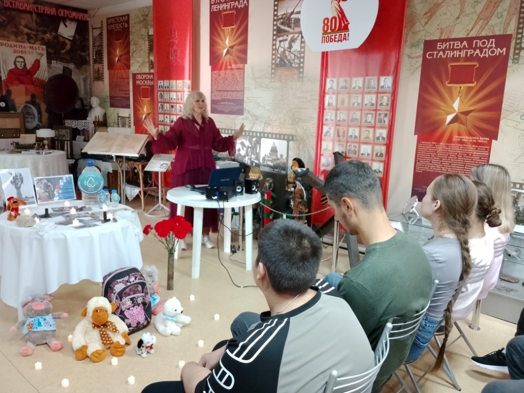 Студенты Отрадненскогго нефтяного техникума групп 25 КС1, 25 РЭ1, 25 С1 и ученики школ города пришли в музей, чтобы почтить память жертв в Беслане. В 2004 году случилась в нашей стране страшная трагедия В День знаний террористы захватили школу и удерживали людей несколько дней.