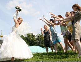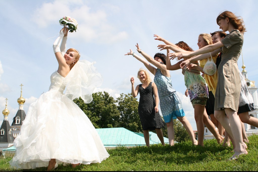 2. Что, согласно традиции многих стран, молодая жена бросает в толпу гостей? Выбери правильный ответ.
