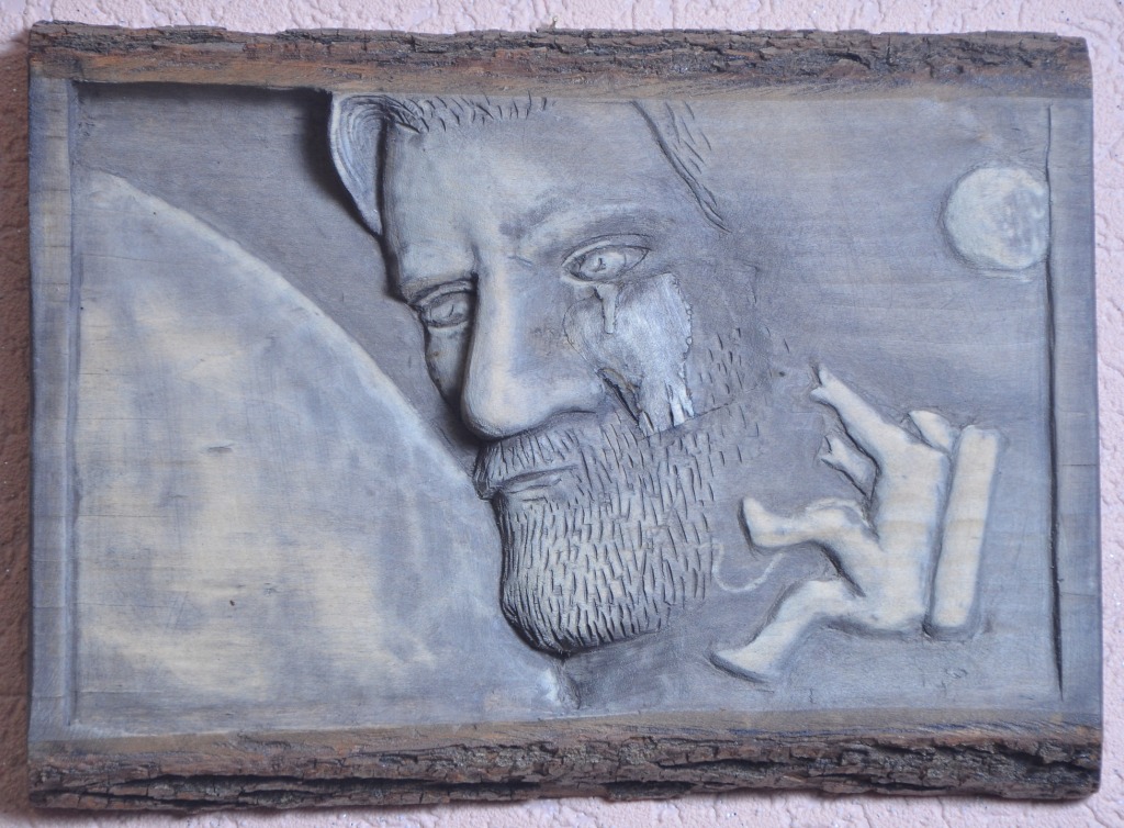 Одна из его работ – это декоративное панно «Опустела без тебя Земля». Эту работу автор посвятил космонавтам, погибшим в космосе. В центре композиции - образ Христа. Художник использует интересный прием и оставляет нетронутой кору на липовой доске, что подчеркивает своеобразный почерк автора в резьбе по дереву.