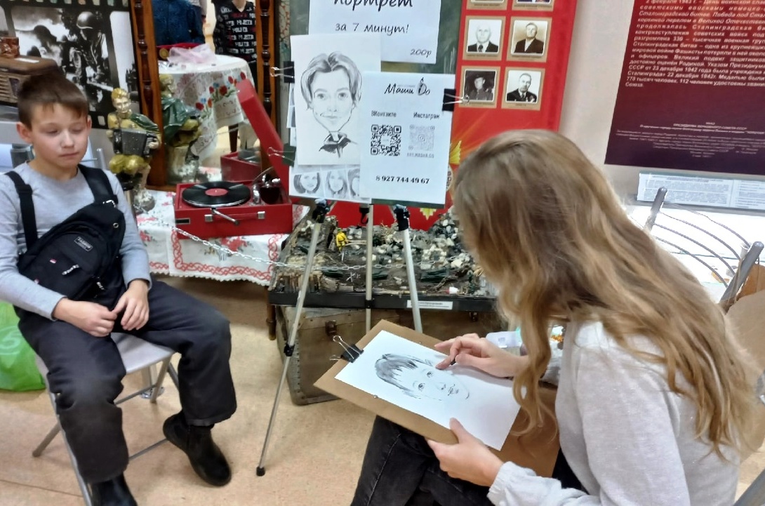 Как же обойтись в «Ночь искусств» без памятных снимков? Сделать незабываемое фото смогли участники акции в специальной тематической фотозоне., а портреты всем желающим писала художник Мария Доброхотова.
