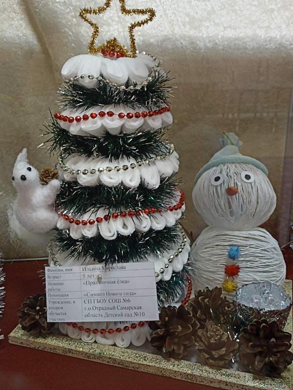 В номинации «Символ нового года» награждены за 1 место Ильина Мирослава /работа «Праздничная ёлка», рук.Богданова О.В./, за 2 место Радченко Михаил /работа «Как красива наша Ёлка», рук.Гаврелюк О.В./ и за 3 место Сомов Дмитрий /работа «Ёлка в праздник нарядилась», рук. Александрова В.А./.