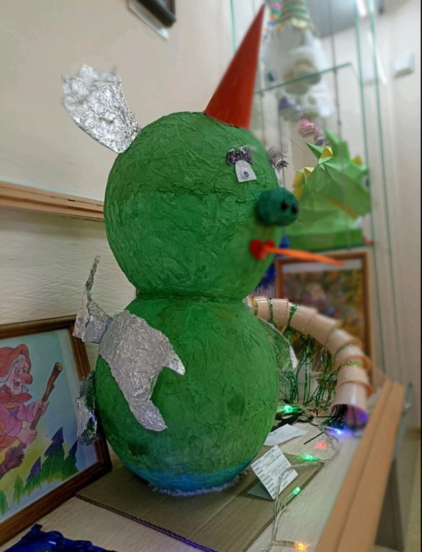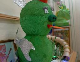 В номинации «Символ Нового года» за 2 место награждена Ушакова Полина. Её вязанный трехголовый «Дракон» поражает изобретательностью. Ну, очень добрый получился дракон (рук. Казакова О.П. и Киселёва М.А.). Сертификат участника вручен Захаровой Виктории (рук. Рогалева Э.Н. Коршунова О.А.).