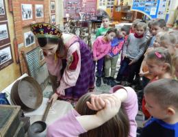 Настало их время рассказать о своей эпохе, и теперь они охотно это делают. Это видно и по экспозиции музея: первопроходцы в дар городу передают личные фотоархивы, воспоминания и, конечно же, предметы обихода. Телевизоры, приемники, холодильники, телефонные аппараты 50¬60¬х годов прошлого века, несомненно, представляют интерес для посетителей музея. Но разве может существовать музей города буровиков и промысловиков без вышек, колб с маслянистой нефтью, кернов пород, через которые люди пробиваются к «черному золоту»?! Макеты буровых, нефтеперекачек, панорамы – всему нашлось место в музее. Рады ветераны, что переданное ими бережно сохранено, приходят сами, ведут своих внуков: «Посмотри, вот в этом доме на сороковом мы получили квартиру, а во-¬о¬-н в том бараке на «колыме» нам комнатку дали, как только из деревни приехали и устроились в контору бурения. Его давно снесли, теперь там улица Молодогвардейская. Какими же мы были молодыми…». А внукам дай только дотронуться до чугунного утюжка, которым прабабушки утюжили рюши, воланчики своих нарядов, сесть за веретенце, поднять трубку старинного телефона, подержать в руках берестяной туесок. А если гидом будет девушка в русском сарафане да расскажет еще она, как получается комочек шерсти, и на твоих глазах спрядет из него тонюсенькую пряжу, которая вполне может сгодиться и для узористого платка... Такие впечатления сохранятся надолго. К тому же частенько наш музей в народ выходит, особенно летом, когда проходят праздники дворов. Вот где раздолье для воображаемого путешествия в те далекие времена, когда в неспешных делах жили наши прапращуры. Нелегко давался им хлеб насущный, но твердо стояли они на ногах, потому что жизнь их держалась на трех китах: вере, любви и согласии. Связь времен. Им не будет забвенья Помните строки: «Я поведу тебя в музей», ¬ сказала мне сестра»? Так вот, наш современник, мальчишка лет шести, после посещения музея с садиковской группой на следующее утро потребовал от мамы семейного похода по залам музея. И привел маму и старшую сестру, и застряли они в его стенах на добрый час. Экскурсовод все это время был рядом с ними, и приятно было ему рассказывать благодарным слушателям о городской сокровищнице. Я поинтересовалась у С. Инжуватовой: «Чем Вы объясняете такой большой интерес отрадненцев к развитию коллекции музея?».