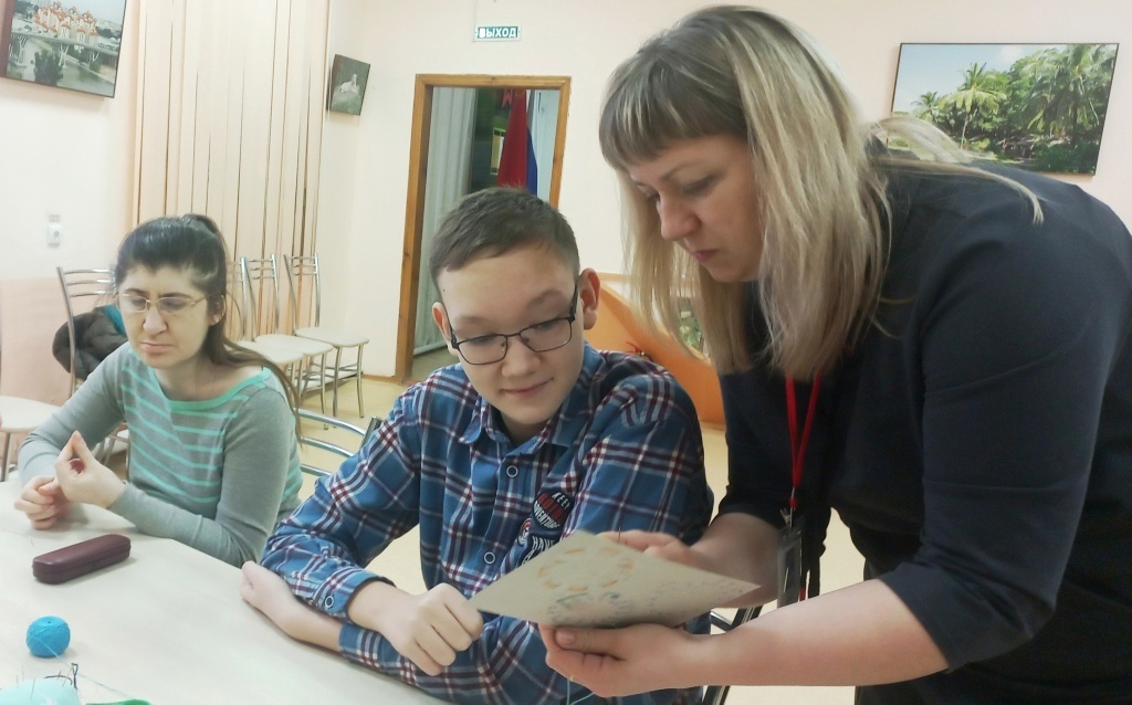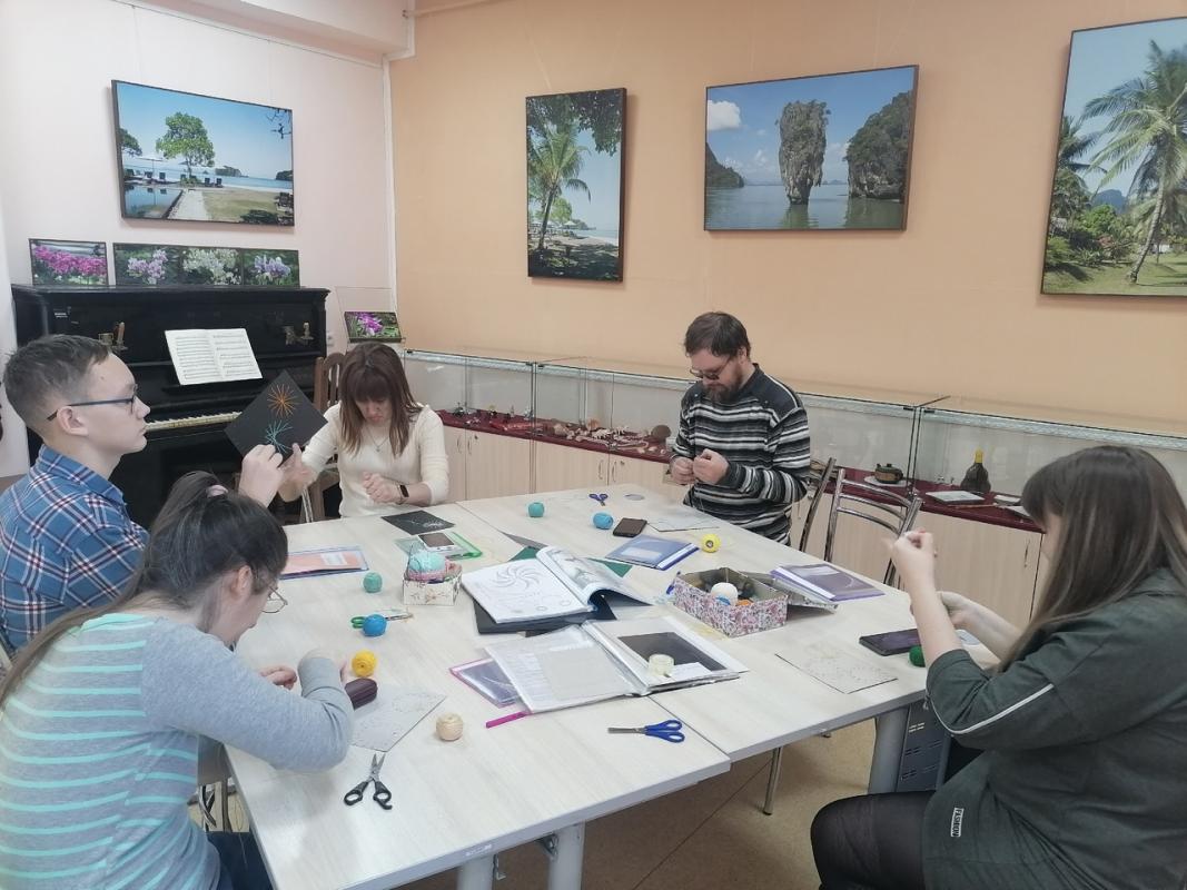 Участники студии "Радость творчества" осваивают нитяную графику