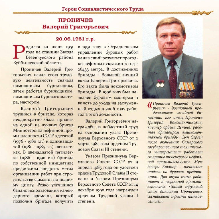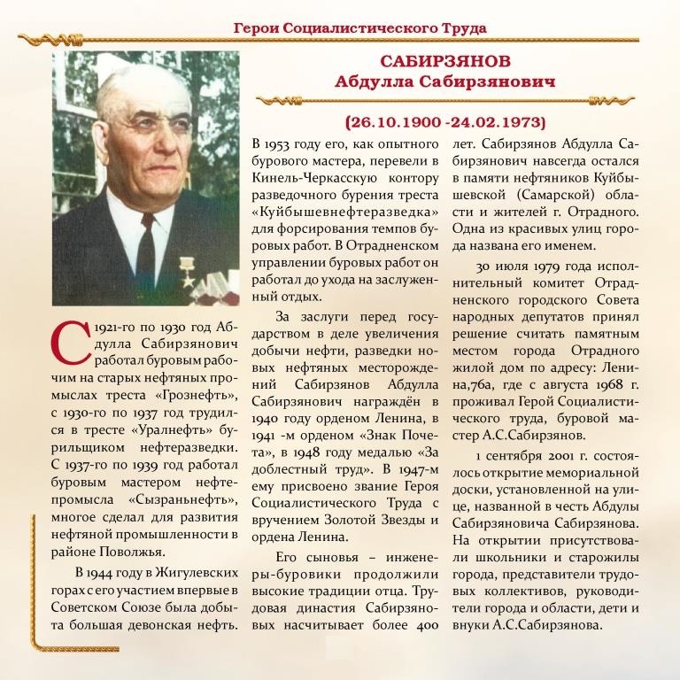 Все они буровики и нефтяники. Им, первым, было трудно осваивать нефтяные месторождения. На долю отрадненских нефтяников и буровиков-первопроходцев выпала самая грязная, самая тяжёлая, самая опасная, самая ответственная часть работы. Они выполняли её с честью, оставив нам в наследство налаженное нефтяное хозяйство и уютный зелёный городок.