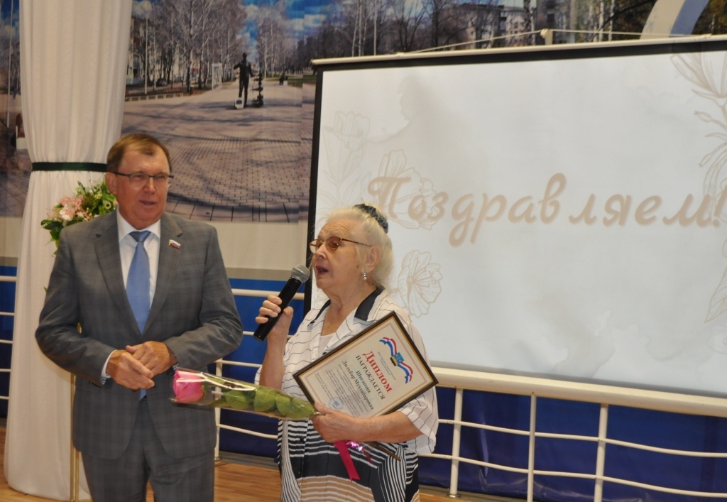 А ветеран – строитель, старожил города Левина Валентина Сергеевна была удостоена нагрудного знака «За служению городу».