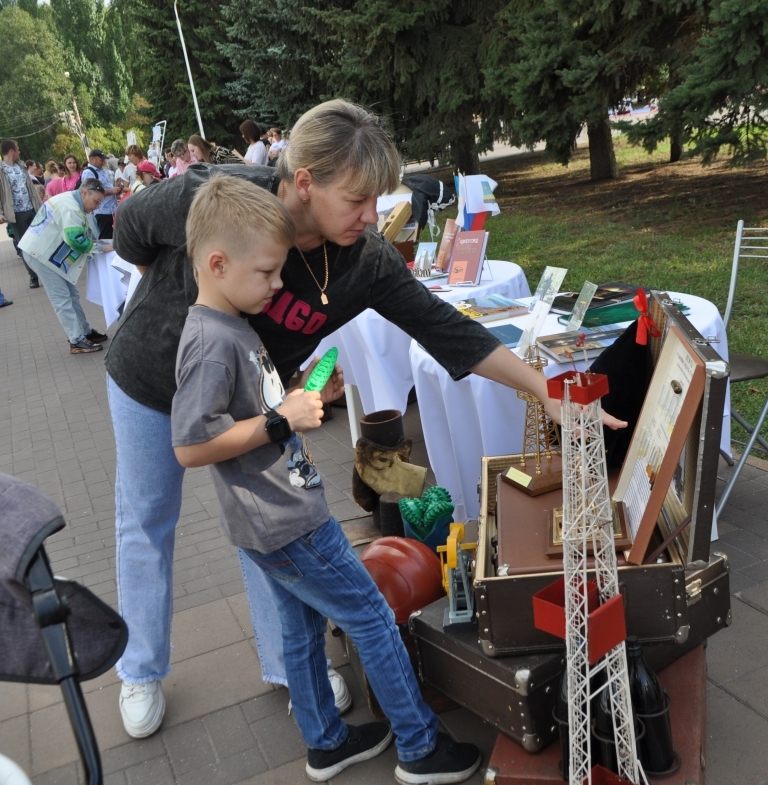 Сотрудники музея также приглашали гостей праздника заглянуть в «волшебные» чемоданчики, в которых были представлены особенные экспонаты: образцы нефти с уникальных и исторических месторождений отрадненских нефтяников, нефтяная вышка, образцы кернов, строительные инструменты...