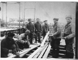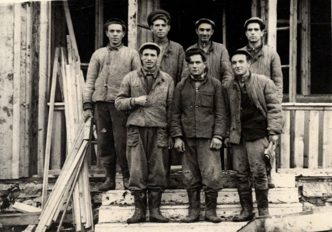 Первые поселенцы – строители приехали в 1946 году в поселок нефтяников. Жили они тогда в старых землянках учебного полигона летчиков. В тоже время начали строить первые финские дома. Имена первых строителей – К.К. Энгельгардт, В.П. Галь, В.С. Бугакова, Е.Д. Ларионова, С.С. Носкович.