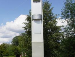 Проект стелы выполнил Сергей Анатольевич Брагин - директор рекламного агентства «Пятый угол». Она была установлена рабочими агентства и стала прекрасным подарком городу к юбилею.