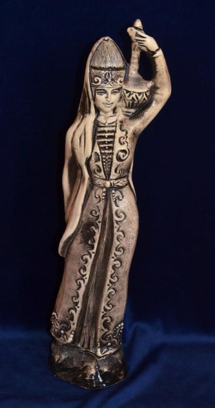 «Женщина с кувшином» — статуэтка, от которой веет теплом и спокойствием. Стройная горянка в национальном платье и головном уборе с орнаментом. Она грациозно несёт кувшин на плече. Никакой суеты , а только достоинство. Прекрасный сувенир и напоминание о том, что красота живёт в простоте.