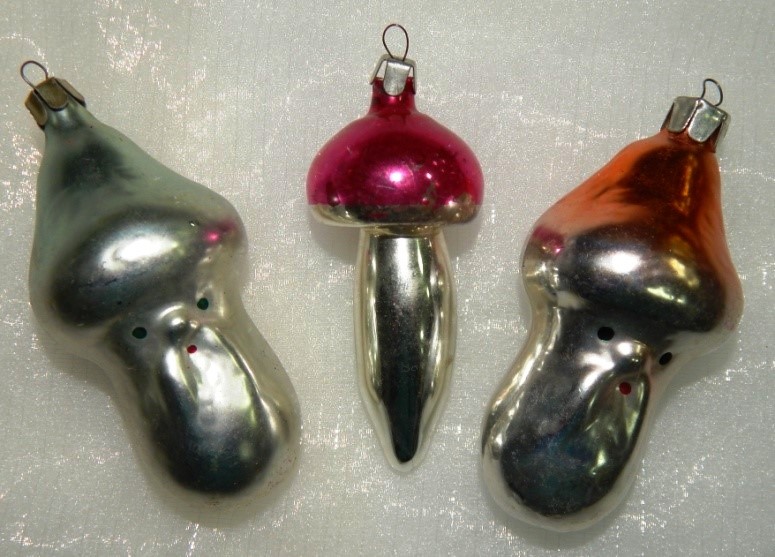 В начале 1960-х годов художники стали смелее экспериментировать с формой. В продаже появились шары разных размеров и разнообразной цветовой гаммы, с выемками, удлинениями, со "снегом" на поверхности. Некоторые покрывали светящейся в темноте краской. В те же годы начали делать стеклянные украшения в форме сосулек, шишек, пирамидок.