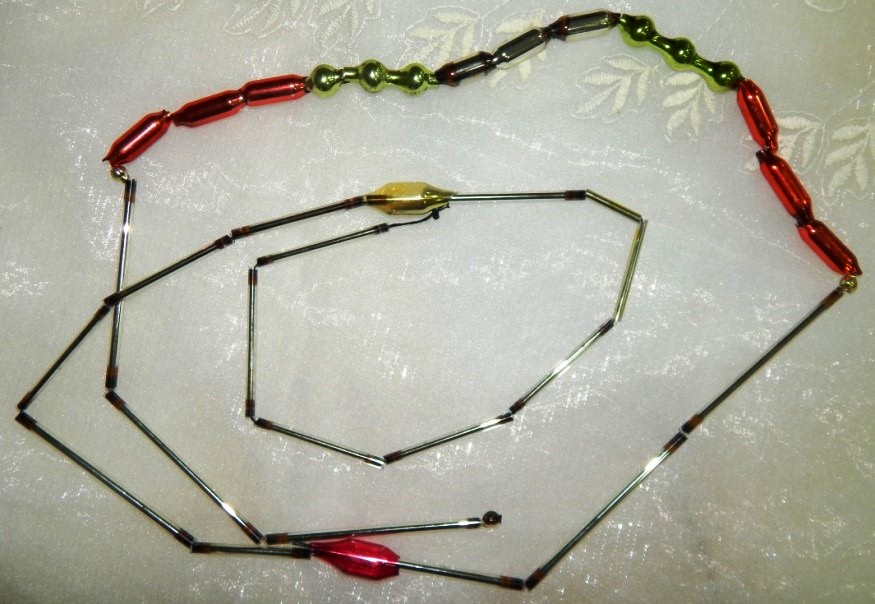Популярными и доступными были гирлянды из цветных бумажных флажков, с отпечатанным на них рисунками. Их изготавливали в 1940-50-ые, и даже в 1960-ые бумажными гирляндами ещё наряжали елку.