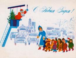 Новый год был самый любимый праздник и в это время ждали чуда и нового счастья. И как кусочек счастья и залог встречи воспринимались новогодние открытки. Эти маленькие послания со сказочными персонажами ждали с нетерпением во всех концах огромной Страны Советов. Это был настоящий предпраздничный ритуал – заранее выбрали и приобретали целые стопки красочных новогодних открыток, которые подписывали и отсылали родственникам, друзьям и зТеперь, уже в наши дни, старые открытки – трогательный привет из еще не столь далекого прошлого.
