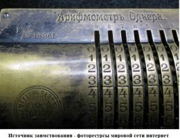 Слово арифмометр (от греч. αριθμός — «число», «счёт» и греч. μέτρον — «мера», «измеритель» – настольная или портативная механическая вычислительная машина, предназначенная для точного умножения и деления, а также для сложения и вычитания) появилось в русском языке во второй половине XIX века благодаря изобретению шведского ученого Вильгодта Однера, усовершенствовавшего изобретенные ранее, но не получившие широкого распространения «счетные машинки».