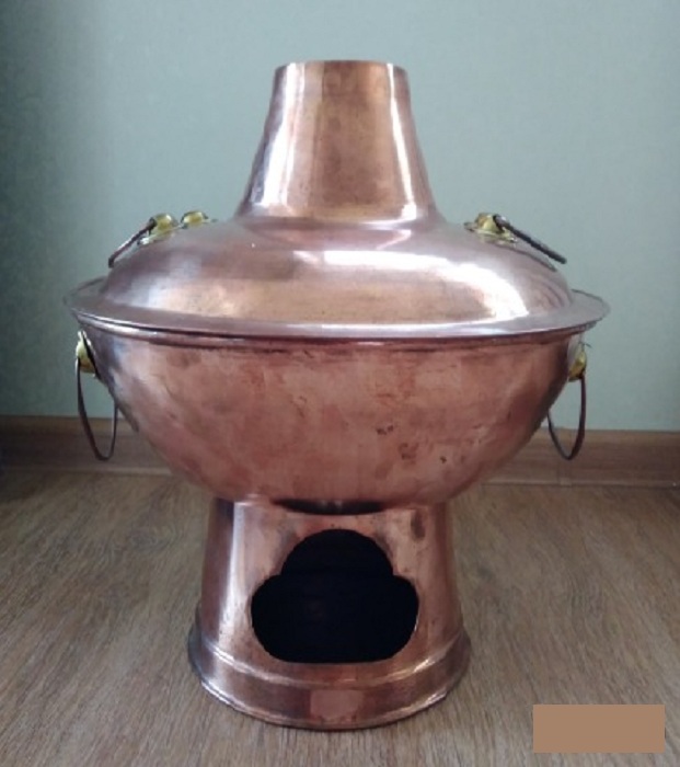 Аналогичное древнейшее приспособление существовало и в Китае. Глубокая чаша со встроенной трубой и поддувалом - вот что представляет собой знаменитый китайский прототип самовара, именуемый «Хо-Го». Они бывают металлическими и фарфоровыми, и подают в них, как правило, суп или кипящий бульон.