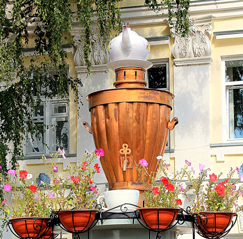 Однако глубоко почитаем самовар и в других странах, где в знак признания ему возведено множество памятников. Памятники самовару можно увидеть и в России – в городе Суксуне Пермского края, и, конечно, в Туле. Четырехметровый бронзовый красавец со связкой бубликов установлен и в бывшем купеческом городе Елабуге. Монументы также стоят в Кунгуре (в XIX веке город считался чайной столицей России) и в Городце, что под Нижним Новгородом.