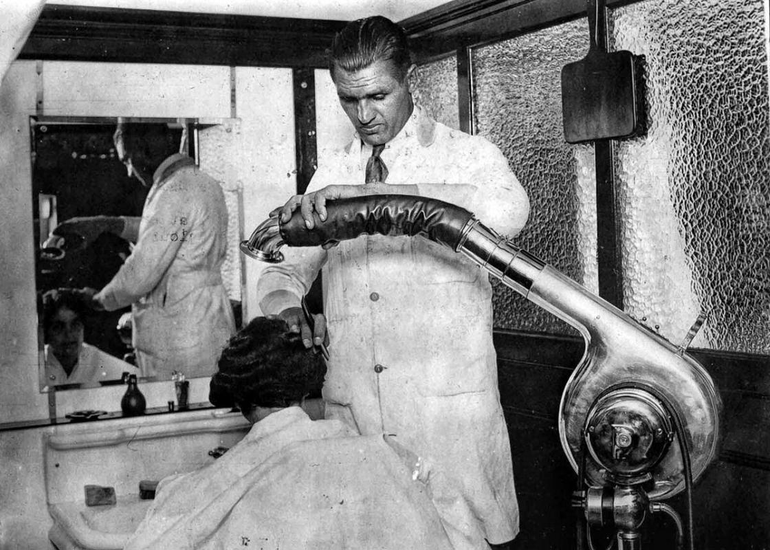 Первый фен был монументальным сооружением. Для его установки нужно было прочное основание, да и звуки он издавал очень громкие. Такой прибор не был рассчитан на домашнее использование и использовался только в парикмахерских.