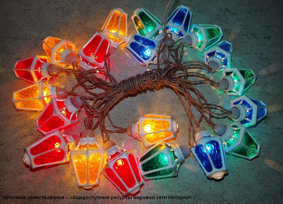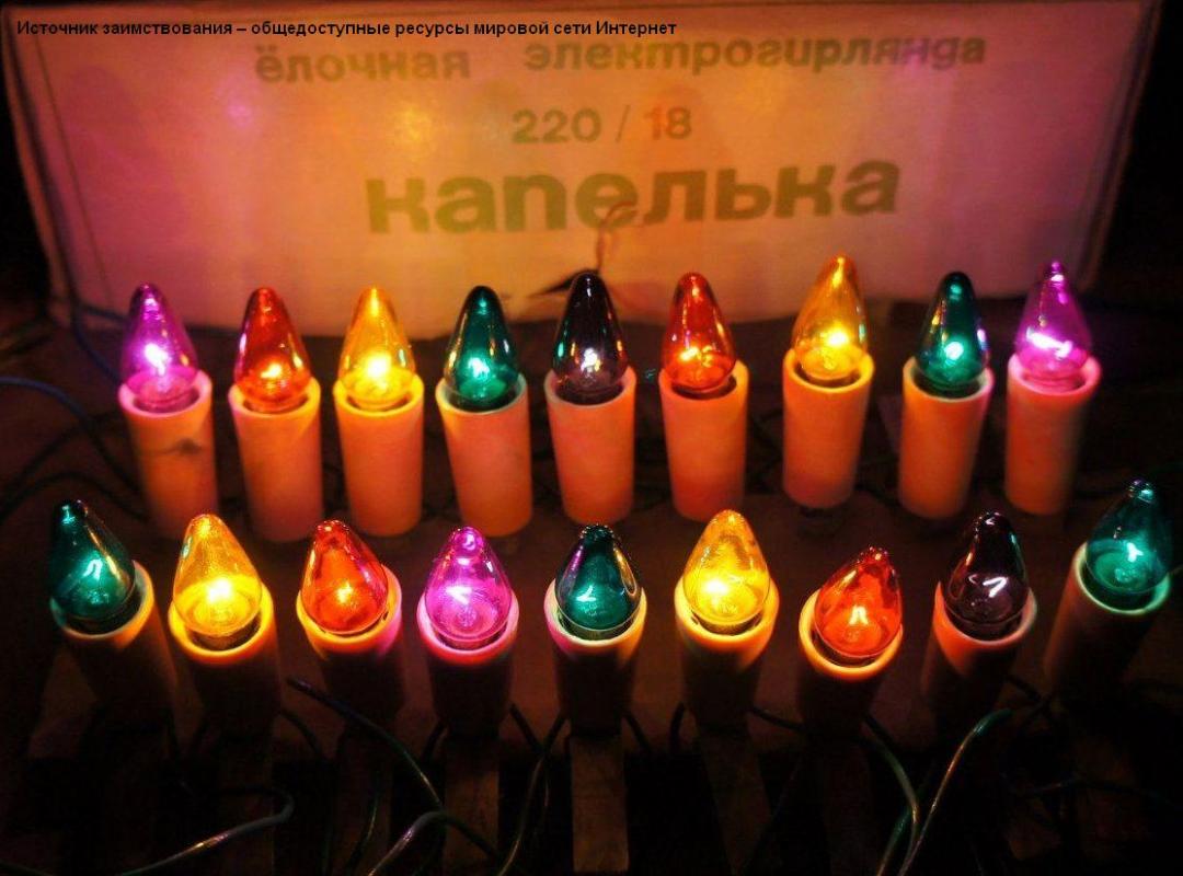 Первые гирлянды в СССР выглядели почти кустарными: это были обычные автомобильные лампочки, припаянные к одному проводу, покрашенные лаками и красками. Несмотря на крайнюю простоту, гирлянды «Московского электролампового завода» были необычайно востребованы. Это неудивительно, ведь даже в тяжелые военные и послевоенные годы они несли в себе толику тепла и уюта.