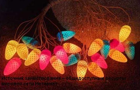 Цветная гирлянда– декоративное украшение, обычно состоящее из цепочки ламп накаливания или светодиодов последовательно соединенных жгутом электрических пооводов. В нашей стране не существует праздника, более любимого народом, чем Новый год. Этот праздник объединяет всех и никого не оставляет равнодушным. Все жители страны украшают елки в своих домах красочными игрушками и вешают на них цветные елочные гирлянды. Таинственно мерцающие огоньки на елке стали настоящим символом новогодней ночи.