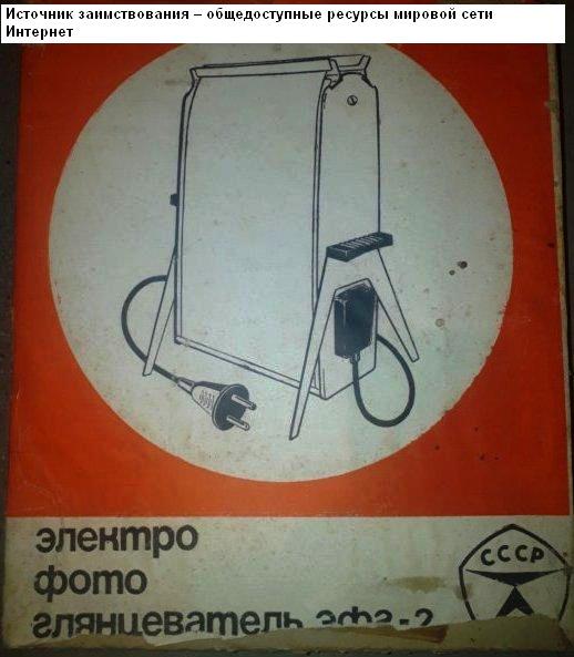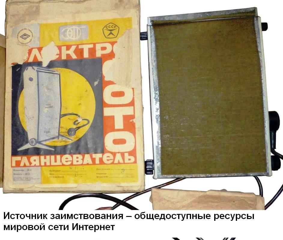 В наше время, даже продавцы старой фотоаппаратуры на барахолках не всегда знают, что это такое! Мы вам расскажем об электрофотоглянцевателе. Это электрический прибор для придания зеркального блеска поверхности позитива, выполненного на глянцевой фотобумаге.