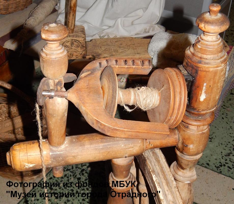 Ручная деревянная прялка – это был наиболее распространенный, а главное, доступный для предков прибор для изготовления нитей. Существовали прялки из цельного дерева и такие, где каждая отдельная часть была выполнена из другого вида древесины. На Руси прялки делали из клёна, осины, берёзы, липы. Ручная прялка состояла из вертикальной части, куда привязывалась кудель и горизонтальной (донце), где сидела пряха. Вертикальная часть состояла из лопаски (лопати) и шейки (ножки). Прялку, особенно лопаску, часто украшали и расписывали. По конструкции можно выделить два вида прялок: цельные (делались из корня и ствола дерева) и составные (состояла из двух деталей, горизонтальной и вертикальной).