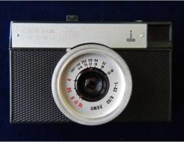Фотоаппарат "Смена - 8М". Изготовитель: Ленинградское оптико-механическое объединение имени В.И.Ленина, г. Ленинград. Время создания: 1970-1990 гг. Материал: алюминий, стекло, пластмасса. Шкальный фотоаппарат. Технические характеристики: объектив Триплет "Т-43", диафрагма - ирисовая, затвор - центральный, фотоматериал - фотопленка типа 135, размер кадра 24х36 мм. Корпус - пластмассовый, бакелитовый, с открывающейся задней стенкой. Приемная катушка съемная, без обратной перемотки. Фокусировка ручная по шкале расстояний и символов.