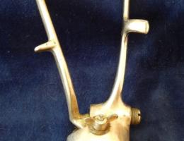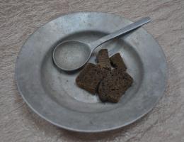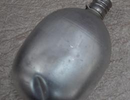 Алюминиевая фляжка овальной формы емкостью 1 литр. Горлышко с винтовой крышкой на железной цепочке. Фляжка помещается в чехол из плотного материала темного цвета. Единственным ярким элементом посуды периода Великой Отечественной войны, дошедших до наших дней, стали фляги.