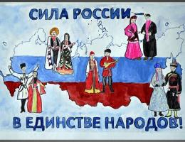 Родина и Единство... Глубокий смысл заложен в этом празднике. Россия много раз подвергалась испытаниям, не раз переживала времена, вражды.. Эти времена назывались у нас смутными, а еще — кровавыми. После каждой трагедии она становилась лишь сильнее на зависть врагам. В суровых испытаниях и битвах закалялся народ и крепло его единство .
