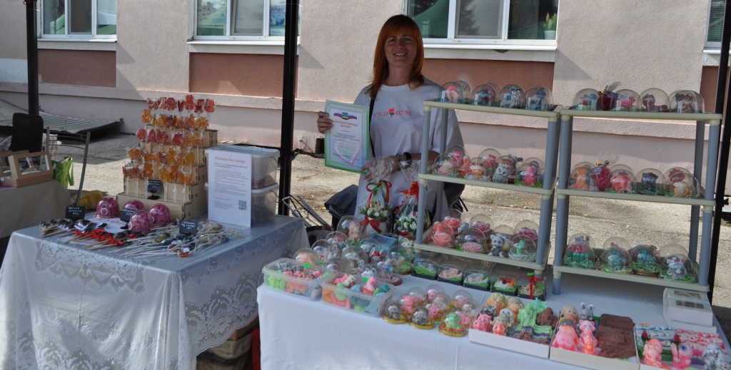 Радовали глаз украшения из бисера и из стразов Банман В.В., тканевые и развивающие книги и игрушки из фетра Ясько И.В., а также интерьерные куклы Кузьминовой Т.В., мыло ручной работы Живовой О.В., сувениры и игрушки из ваты мастерицы Лаптевой М.В., а также сумки, сшитые Антоновой О.Ф.