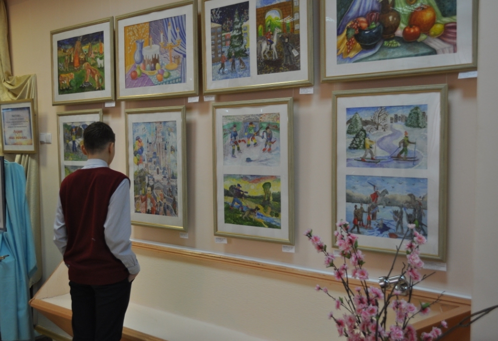 Шестьдесят две творческие работы, созданные мальчиками – обучающимися в детской школе искусств собраны на выставке. Основные темы экспозиции — неповторимая красота родного края, библейские, исторические, военные сюжеты, отражение современной жизни, натюрморты. Здесь представлены различные направления декоративно-прикладного искусства: расписные доски, нетканые гобелены, изделия из бисера, созданные в разные годы.