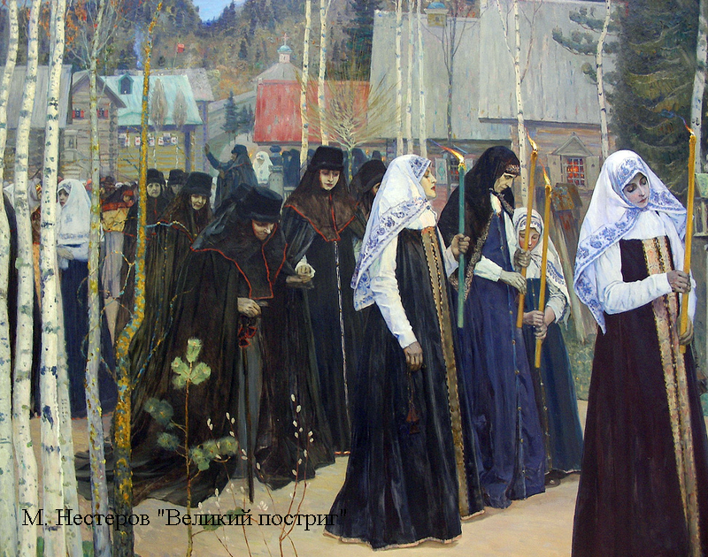 Михаил Нестеров изображает русскую природу без использования ярких оттенков, она лишена внешней эффектности и очень лирична. Пейзаж в его произведениях имеет собственное настроение, созвучное настроению героев картин.