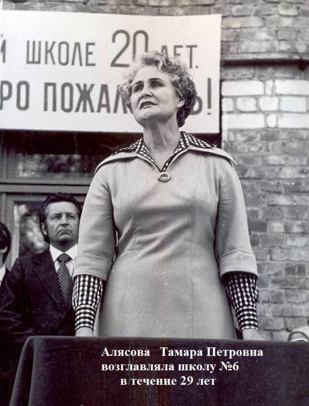 Для очень многих учеников школы стала насоящей мамой Тамара Петровна Алясова. Заслуженный учитель, отличник народного образования, ветеран труда. Более 40 лет она посвятила делу воспитания детей, 29 из них возглавляла школу №6. Удивительная способность Тамары Петровны - умение собрать единомышленников, объединенных одной целью воспитания и обучения юных жителей города Отрадного. Трепетное отношение к своим сотрудникам, забота о них, уверенность в их профессионализме ощущалось на протяжении всех лет ее работы в школе.