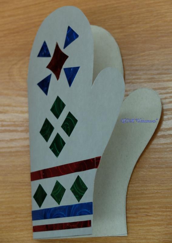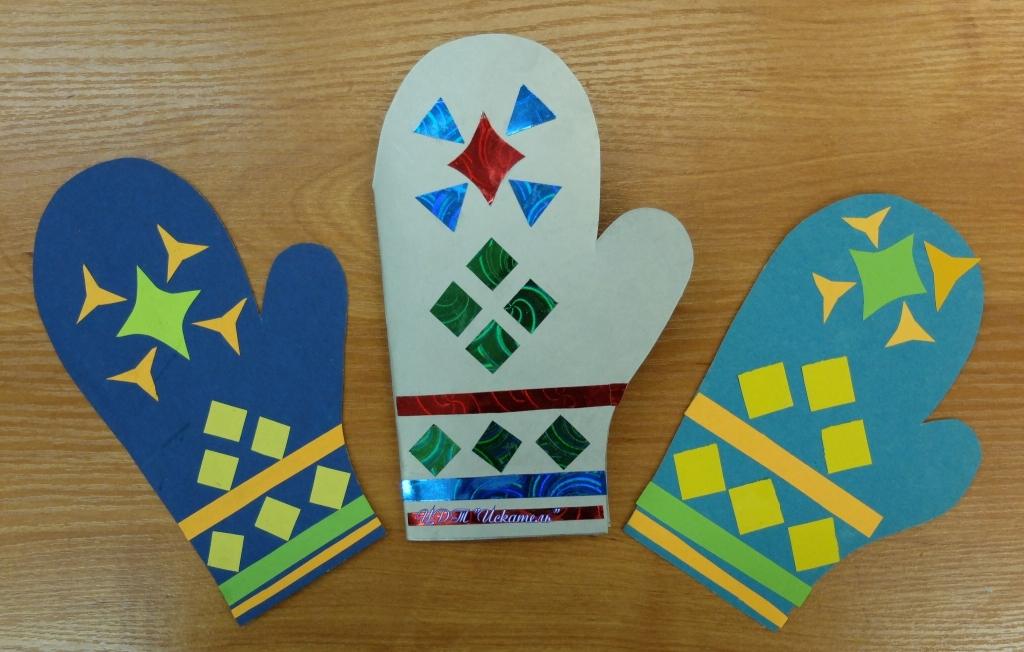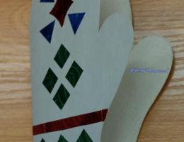 В конце программы мы предлагаем нашим посетителям из цветного картона с помощью шаблона, ножниц и клея создать свою рукавичку-открытку, которая всегда пригодится в зимние праздники для поздравления друзей и знакомых.