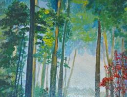 Здесь и работы именитых художников нашего города. Ураткин Павел Леонидович представил живописные полотна и графику. Радует его картина «Лето», уводящая нас в тень деревьев от летнего зноя.