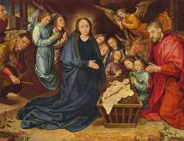 Образ мадонны разнообразно раскрывается во многих полотнах художников эпохи Возрождения. В середине и во второй половине XV века в работах Нидерландских художников особенной прелестью обладают композиции, проникнутые кротким, созерцательным настроением. Они прибегают к сюжетам рождества и поклонения младенцу, эти сюжеты решаются ими тонко и простодушно. В «Поклонении пастухов» Гуго ван дер Гуса (фото 4,5), младенец очень худенький, как всякое новорожденное дитя, окружающие смотрят на него, беспомощного и скрюченного, с глубоким душевным умилением, мадонна тиха, не подымает взора, но чувствуется, что она полна скромной гордостью материнства. А за пределами яслей виднеется пейзаж Нидерландов, широкий, холмистый, с извилистыми дорогами, редкими деревьями, башнями, мостами.