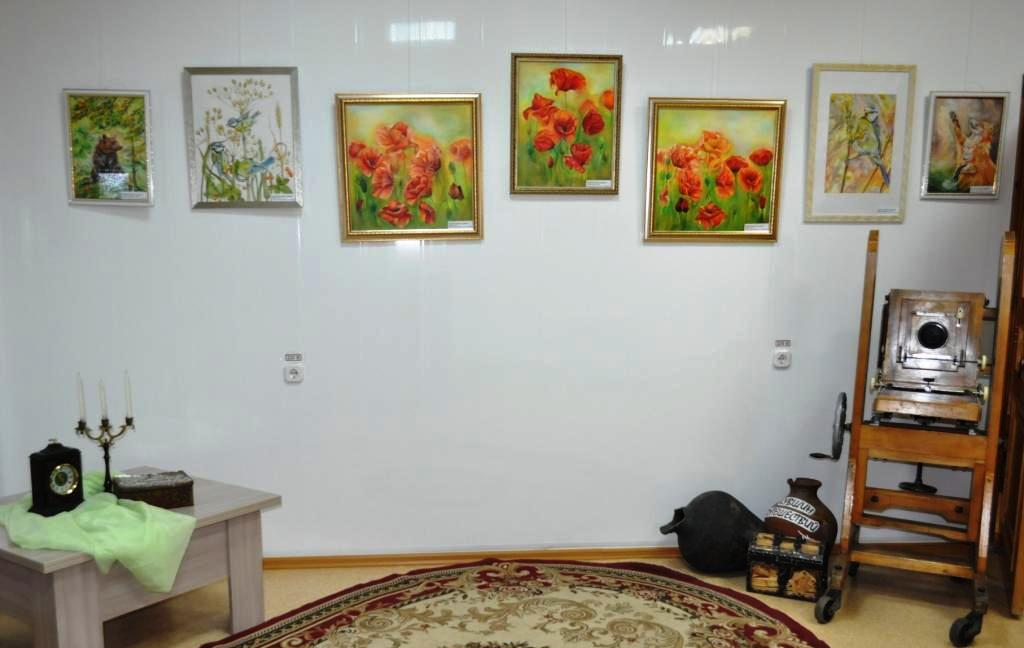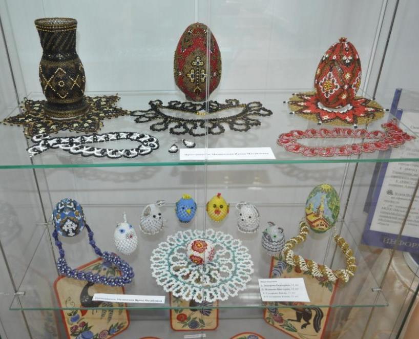 На выставке представлены натюрморты, жанровые композиции, акварельные и акриловые пейзажи, исторические произведения, удивительные украшения и сувениры в технике бисероплетения.