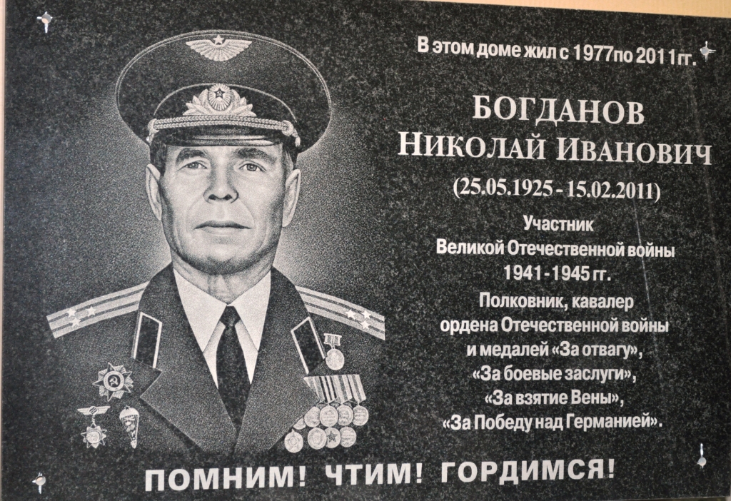 Николай Иванович Богданов долгие годы работал заместителем руководителя автошколы ДОСААФ, в его честь при автошколе был открыт музей. Он – кавалер ордена Отечественной войны, имеет медали «За отвагу», «За боевые заслуги», «За Победу над Германией», «За взятие Вены».