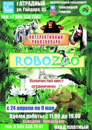 «Интерактивный робозоопарк» начинает свою работу с 24 по 9 мая в Музее истории г.Отрадного.