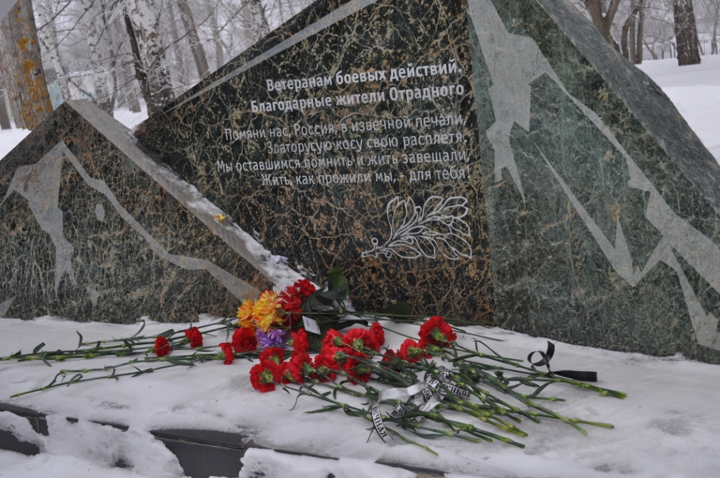 По словам Никишина Ю.Ф, героизм советских солдат навсегда останется примером для военно-патриотического воспитания молодёжи г. Отрадного. В этот день принято вспоминать не только ветеранов войны в Афганистане, но и соотечественников, принимавших участие в более чем 30 вооруженных конфликтах за пределами страны, где свои жизни во время исполнения служебного долга отдали 25 тысяч россиян. Не всем было суждено вернуться к родному порогу, полегли отрадненские ребята на каменистой афганской земле. Не вернулись домой наши земляки: Владимир Суханкин, Александр Мишакин, Михаил Карликов, Сергей Беляев, Владимир Басов, Сергей Щербаков, Сергей Щербаков, Сергей Левчишин.
