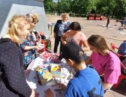 А на станции «Игровая» всем было очень весело. На напольной шахматной доске шли настоящие соревнования, а рядом девочки и даже мальчишки прыгали в классики, играли в различные народные игры.