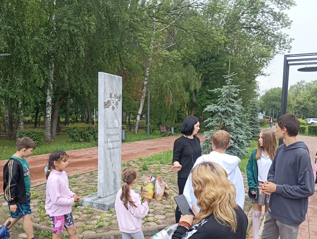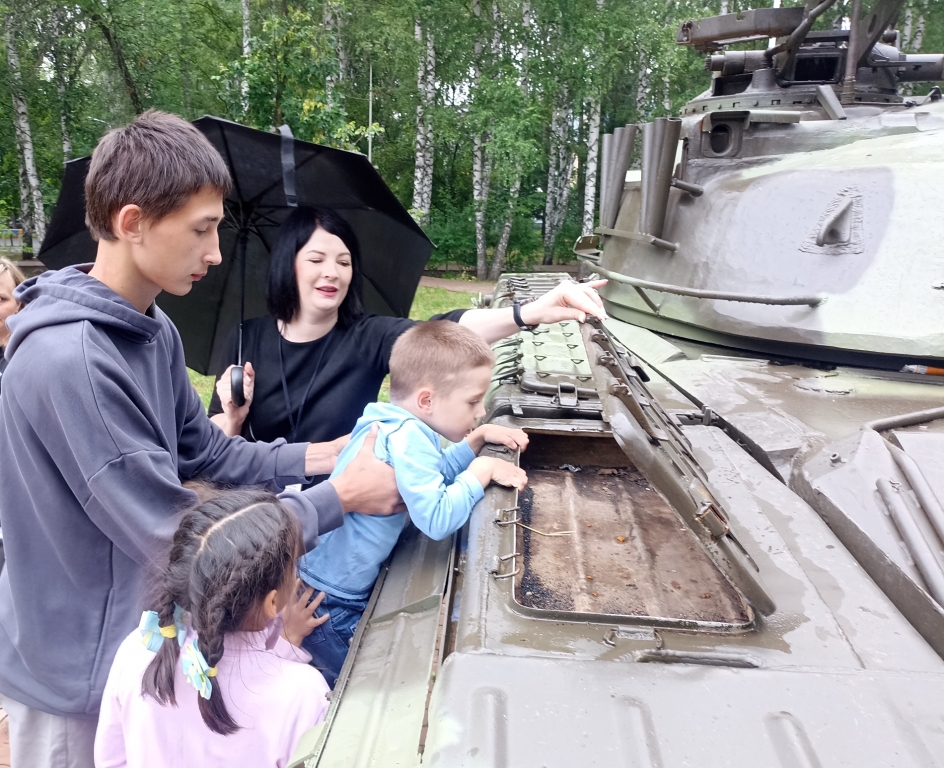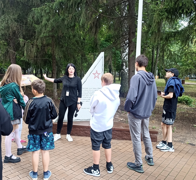 А затем воспитанники реабилитационного центра уже в сквере Победы прошли по аллее «Фронтовые письма», читали строки из солдатских писем, узнали об истории создания стелы «Фронтовые письма». Также ребята узнали много интересных фактов о танке Т- 64 А.