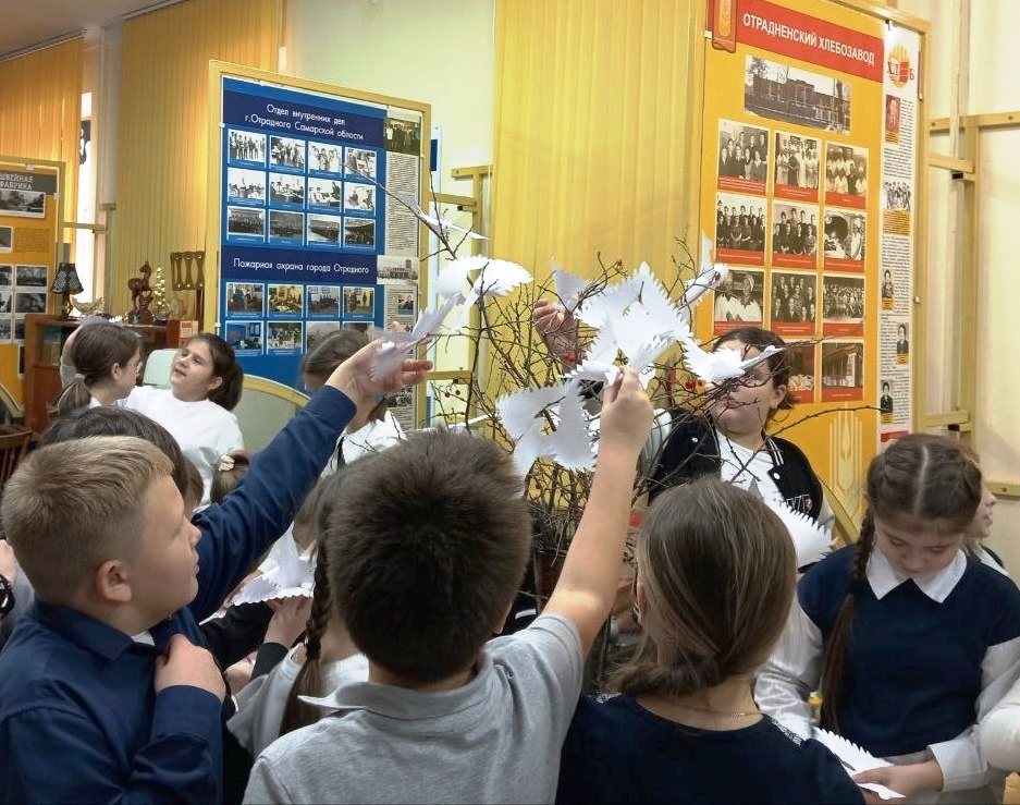 После проникновенной речи об этом дне минутой молчания почтили память павших, а затем, с трепетом, разместили созданных журавликов, чтобы они стали частью нашей общей памяти, напоминая нам о цене мира и о тех, кто его защищал. Пусть белые журавли нашей памяти всегда летят высоко, напоминая нам о подвиге и о важности мира на Земле.