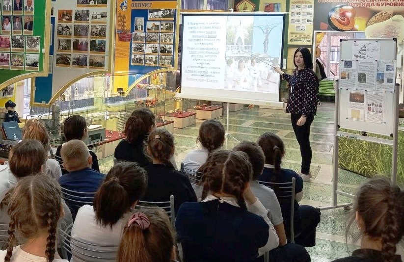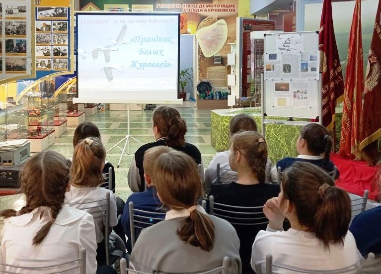 Экскурсовод Катникова А.А. провела ребят по тропам истории, рассказала о зарождении этого трогательного праздника, о народном поэте Дагестана Расуле Гамзатове, чьи строки подарили миру бессмертную песню «Журавли».