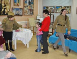 Юные посетители нашего музея во время познавательно - патриотической программы "Школа разведчиков "Патриот" могут померить гимнастерку и каску, надеть солдатские сапоги, подержать в руках автомат, рассмотреть гранату.. Эта часть интерактивной программы приводит в восторг и мальчишек, и девчонок.