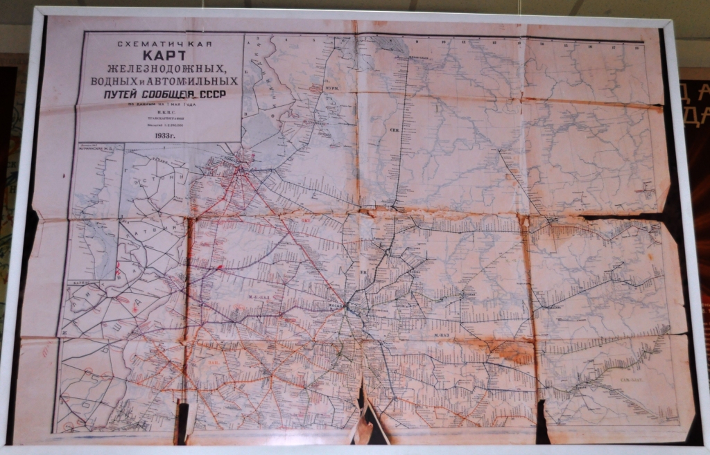 Хронологию Великой Отечественной войны можно проследить не только по учебникам, но и по документам, живым свидетельствам участников. В фондах музея есть  очень ценный документ – карта путей сообщения СССР 1933г.