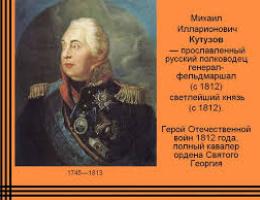 Михаил Илларионович Кутузов прославил себя как государственный деятель, военный стратег во время Отечественной войны 1812 года. Он возглавил народную войну против иноземных захватчиков. Бессмертный подвиг Кутузова в Отечественной войне с Наполеоновской армией навсегда останется в истории русского государства как пример великого патриотизма.
