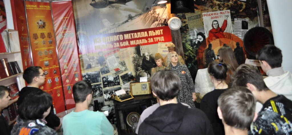 Многие школьники посетили экспозицию «Из одного металла льют медаль за бой, медаль за труд», посвященную труженикам тыла: детям, женщинам, старикам, которые ковали победу в тылу, работали в три смены в условиях голода и холода, часто на пределе человеческих возможностей.