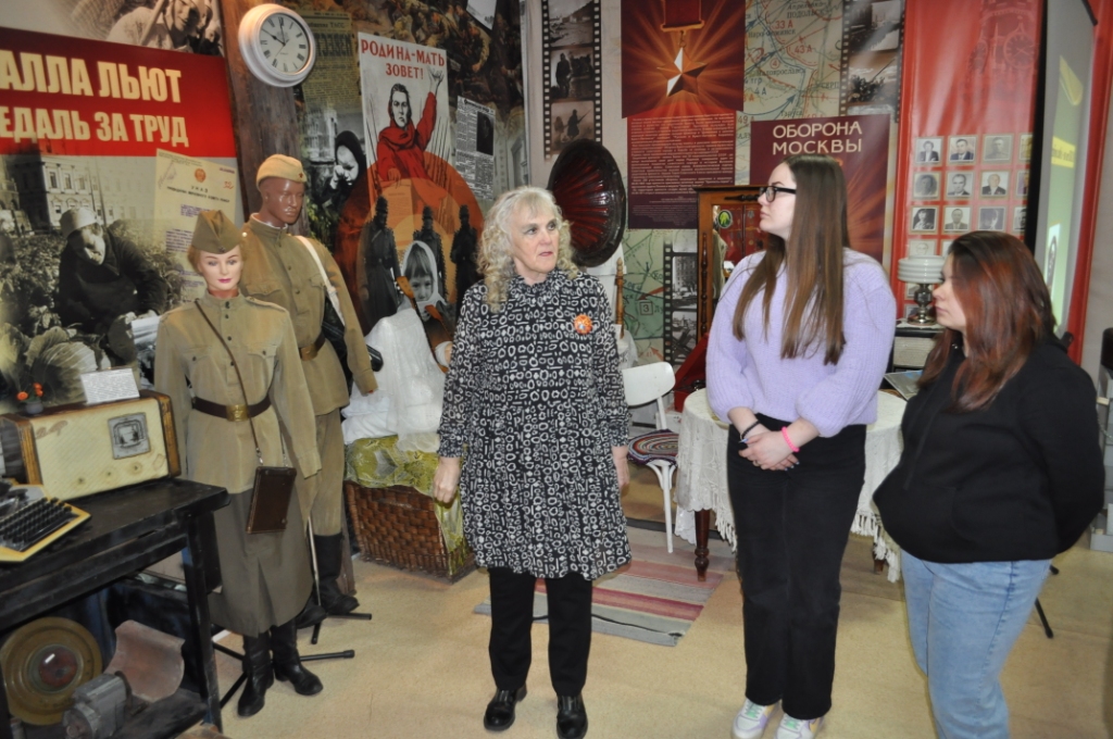 Уроки мужества «Тыл - это половина победы, и даже больше» провела для школьников и студентов Отрадненского техникума, волонтеров студенческой волонтерской организации «ЭкОНТ» - подразделения РМОО «Зеленая планета» с 15 по 17 марта ветеран образования, член Совета музея Тамара Викторовна Митяева. Она рассказала ребятам как в первые месяцы войны важно было эвакуировать и восстанавливать производство на промышленных предприятиях, переброшенных в г. Куйбышев, которые в максимально короткие сроки освоили промышленное оборудование, наладили выпуск военной продукции.