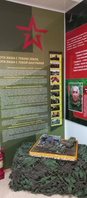 Отдельные разделы посвящены событиям новейшего времени, специальной военной операции, перспективам развития Донбасса. Экспозиция дополнена материалами о героях Специальной военной операции, защищающих Донбасс от нацизма, и о том, какую помощь получают жители новых регионов для возвращения к мирной жизни в составе России.