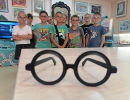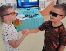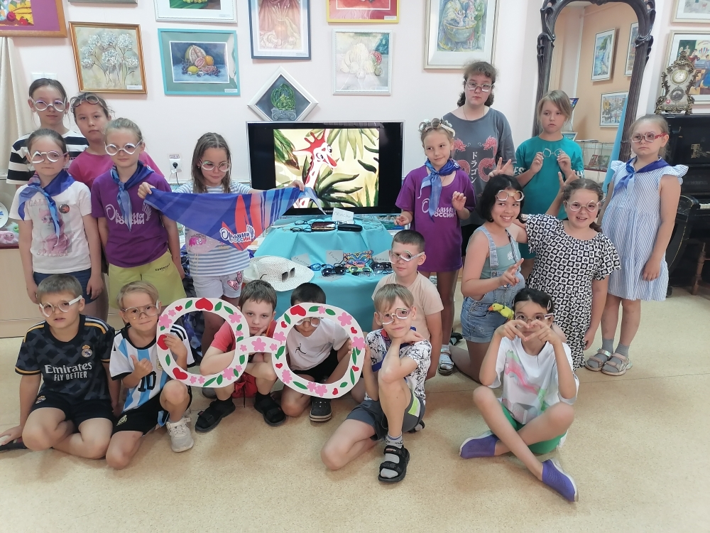 Экскурсовод Писчасова М.В. подготовила для ребят много сложных вопросов. Например, чем отличаются очки - авиаторы от тишейдов или леннонов, как выглядят самые необычные оправы для солнечных очков, сколько насчитывает и кому принадлежит самая большая коллекция солнечных очков. Ребята отлично ответили на все вопросы, а затем дружно смастерили большие красочные очки для фотосессии.